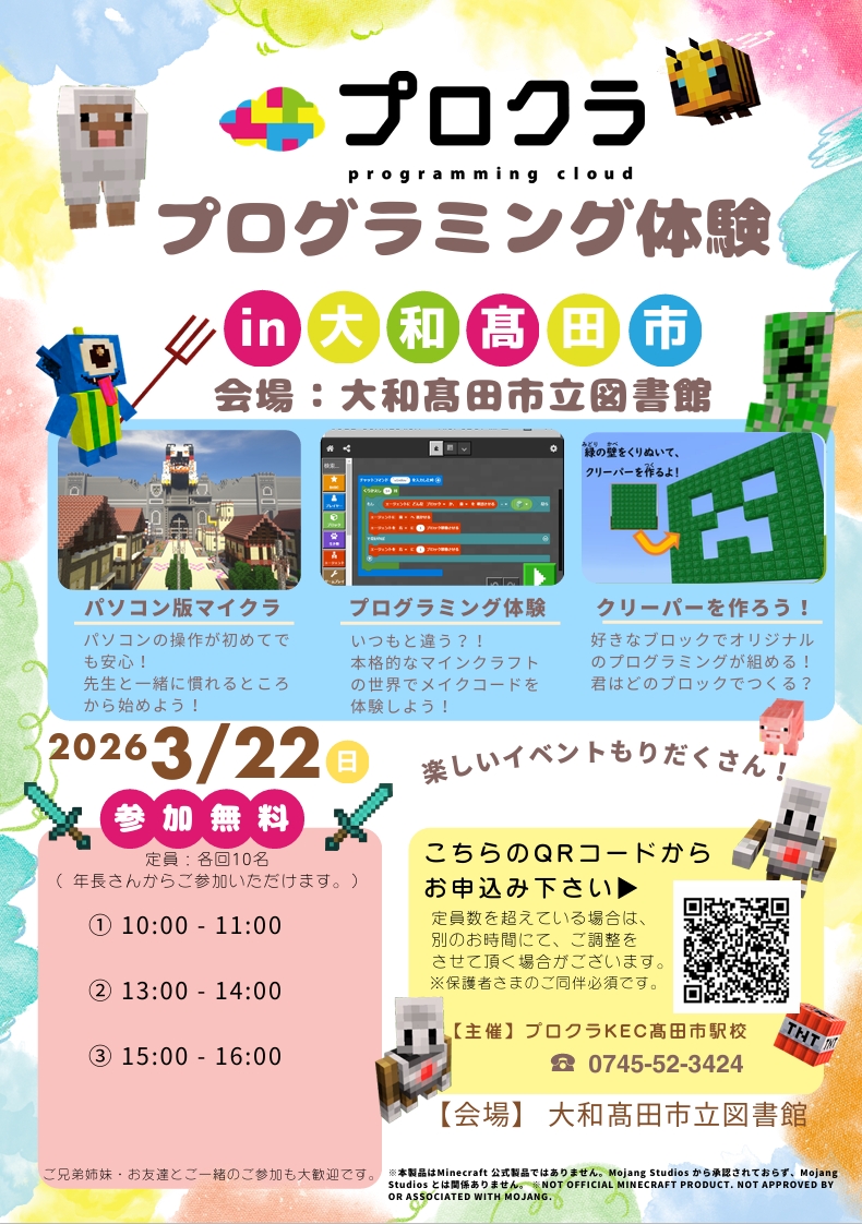 3月22日(日)にプログラミング体験会を開催します。