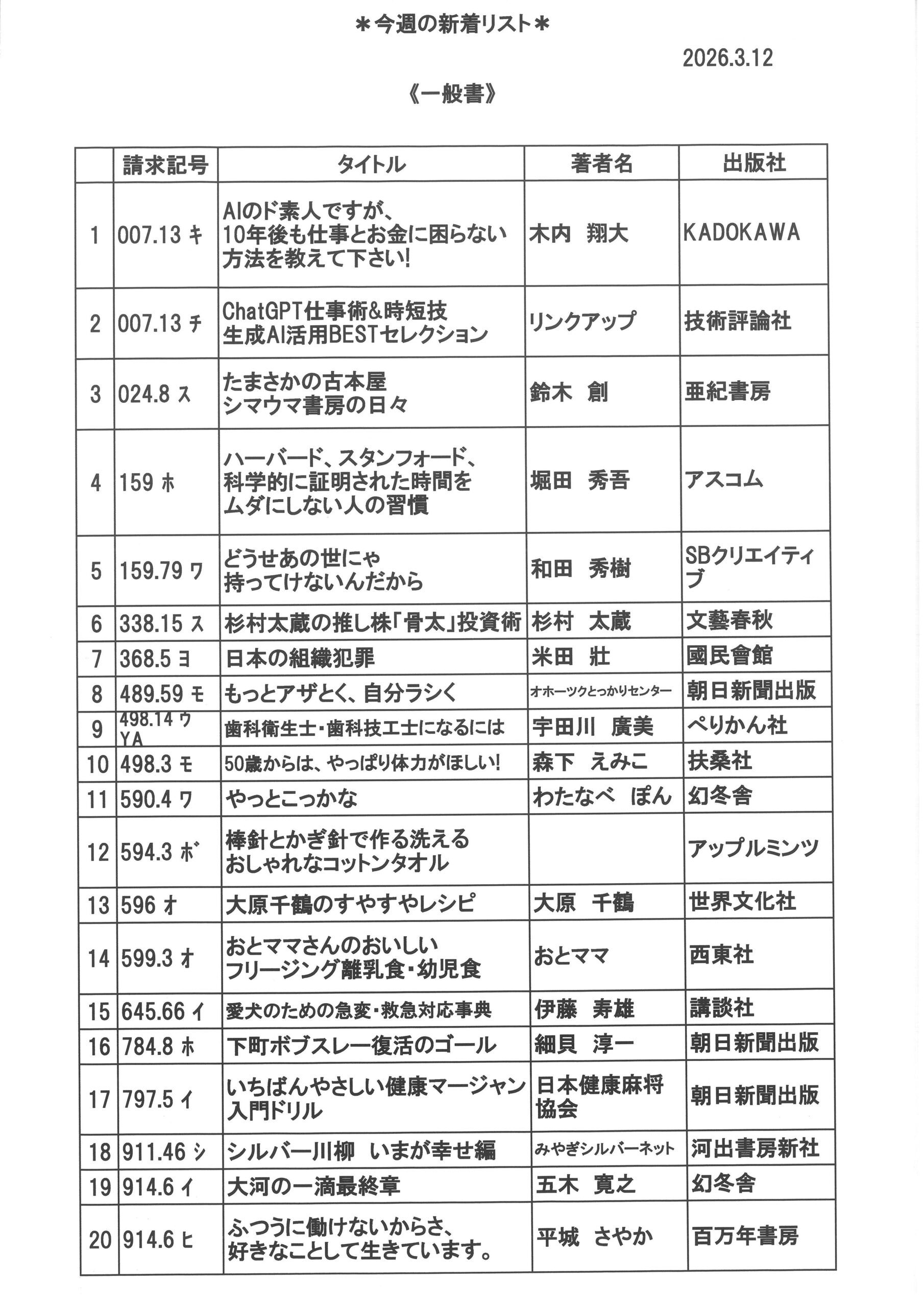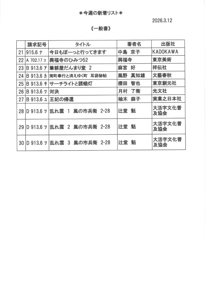 新着図書のお知らせ 2026年3月12日